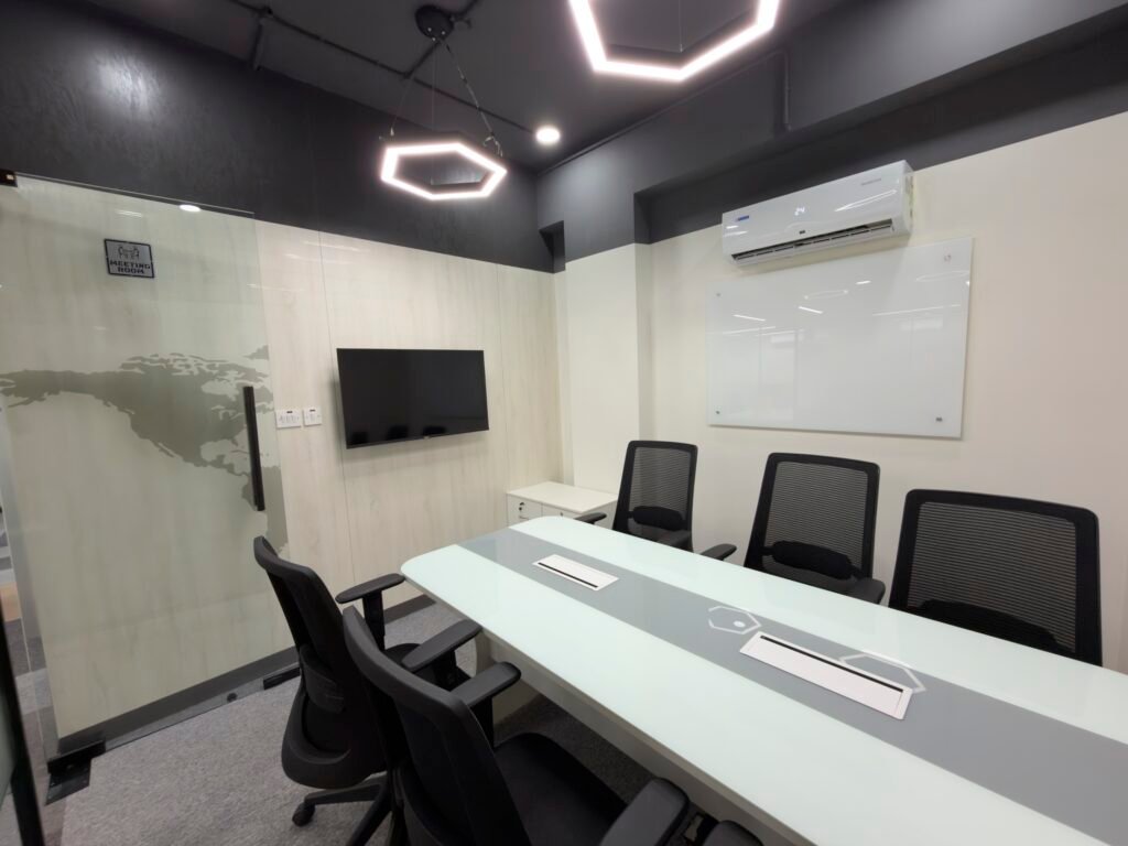 A fully equipped, professional space designed for meetings, presentations, and productive team discussions.